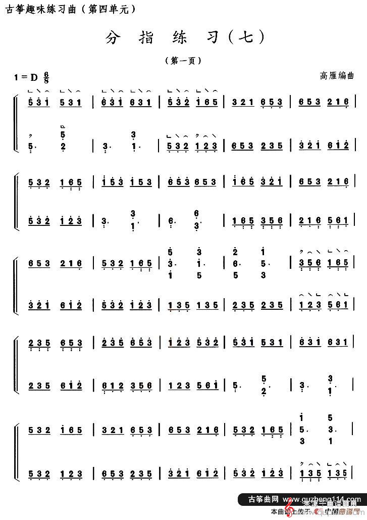 曲谱图网为您提供古筝分指练习(七)曲谱古筝谱找谱子,就上曲谱图网。