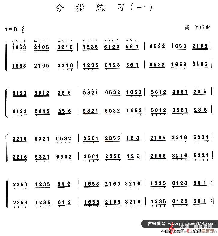 曲谱图网为您提供古筝分指练习(一)曲谱古筝谱找谱子,就上曲谱图网。