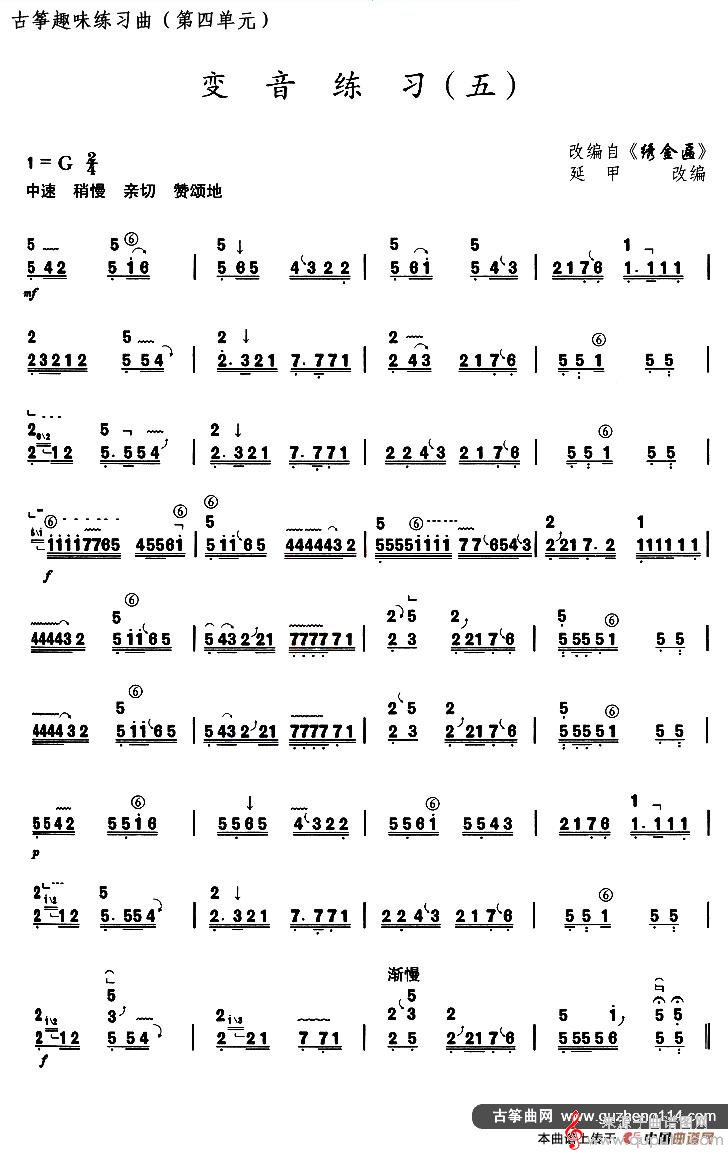曲谱图网为您提供古筝变音练习(五)(选调《绣金匾》曲谱古筝谱)找谱子,就上曲谱图网。