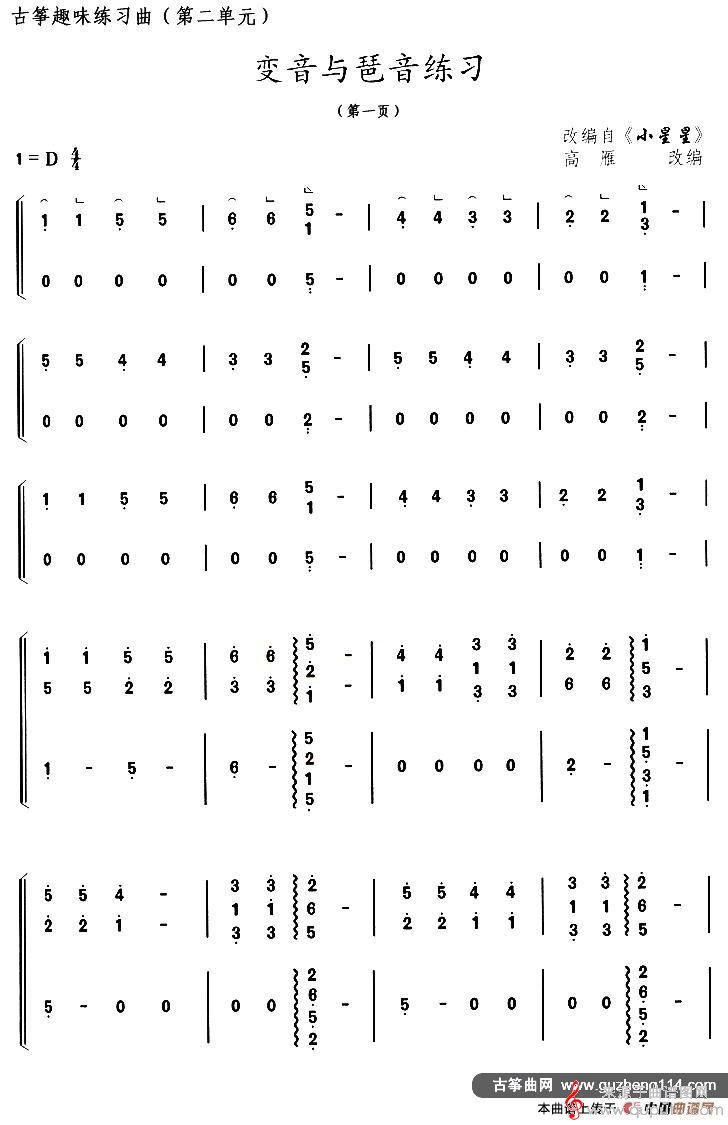 曲谱图网为您提供古筝变音与琶音练习(选调《小星星》)简谱古筝谱找谱子,就上曲谱图网。