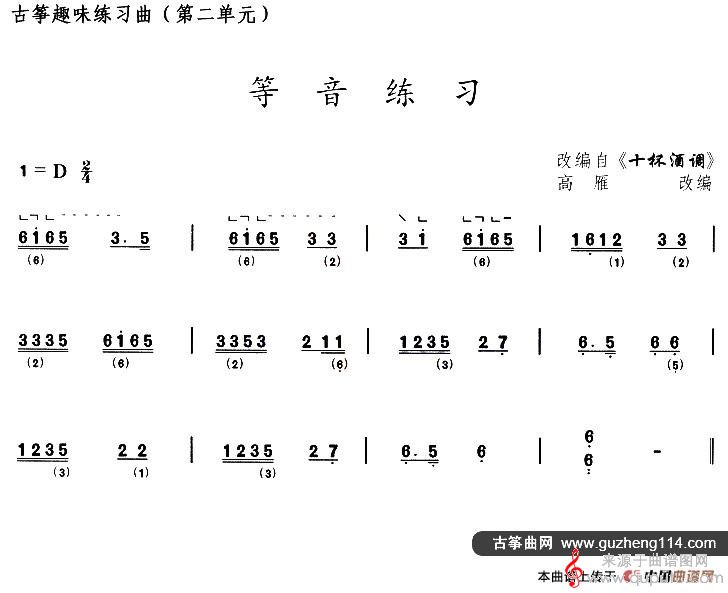 曲谱图网为您提供古筝等音练习(选调《十杯酒调》)简谱曲谱古筝谱找谱子,就上曲谱图网。