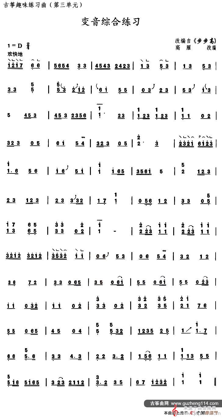 古筝变音综合练习(选调《步步高》)简谱曲谱