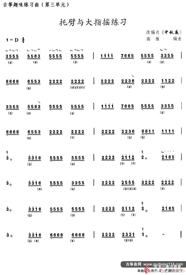 曲谱图网为您提供古筝托劈与大指摇练习(选调《中秋夜》)曲谱古筝谱找谱子,就上曲谱图网。