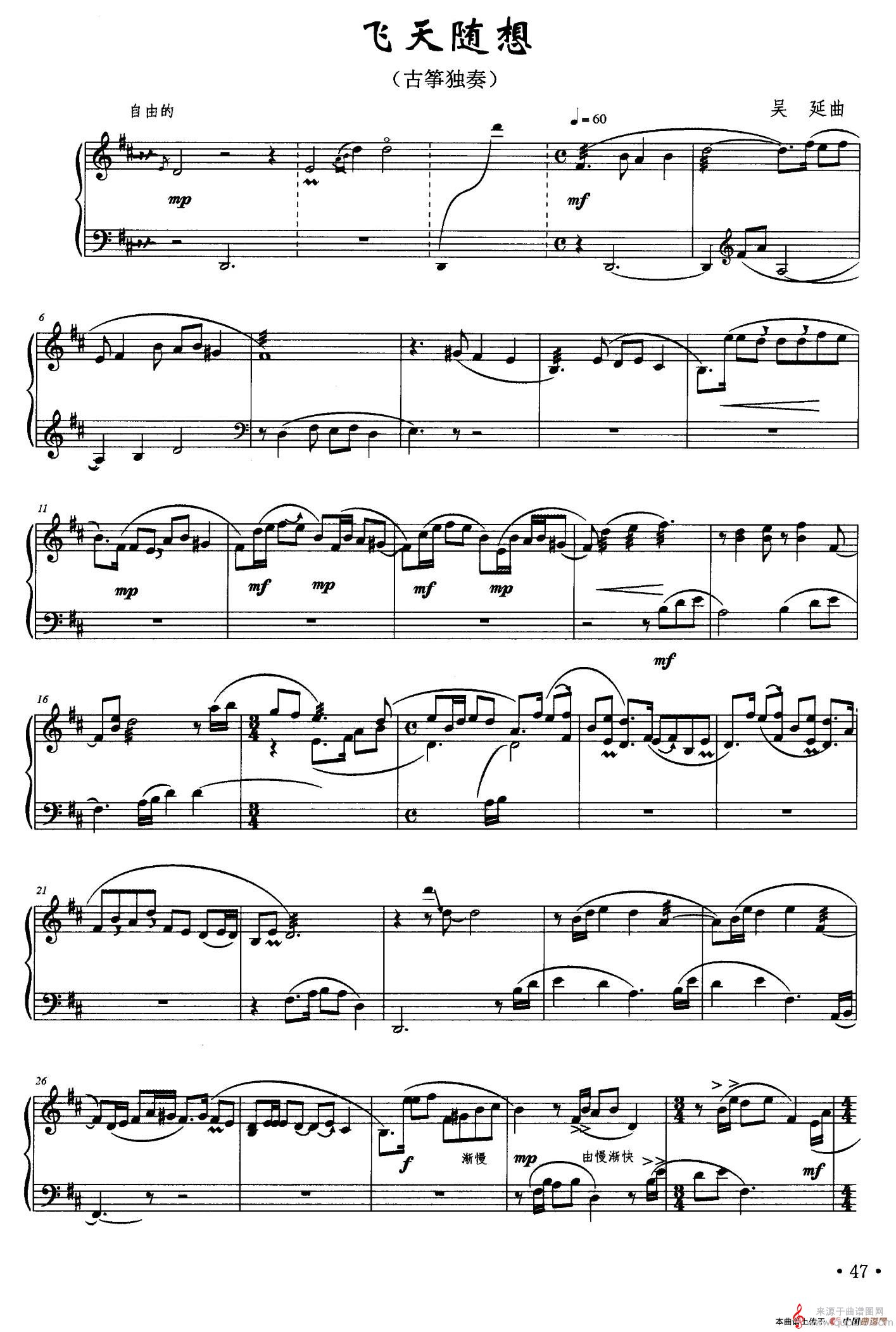 曲谱图网为您提供飞天随想(古筝独奏曲飞天随想简谱教学)找谱子,就上曲谱图网。
