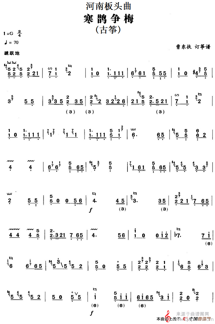 曲谱图网为您提供河南板头曲:寒鹊争梅(古筝曲寒鹊争梅简谱曲谱)找谱子,就上曲谱图网。
