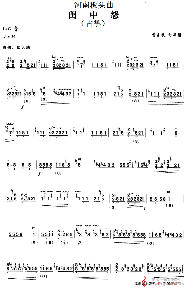 曲谱图网为您提供河南板头曲:闺中怨(古筝曲闺中怨原创简谱曲谱)找谱子,就上曲谱图网。