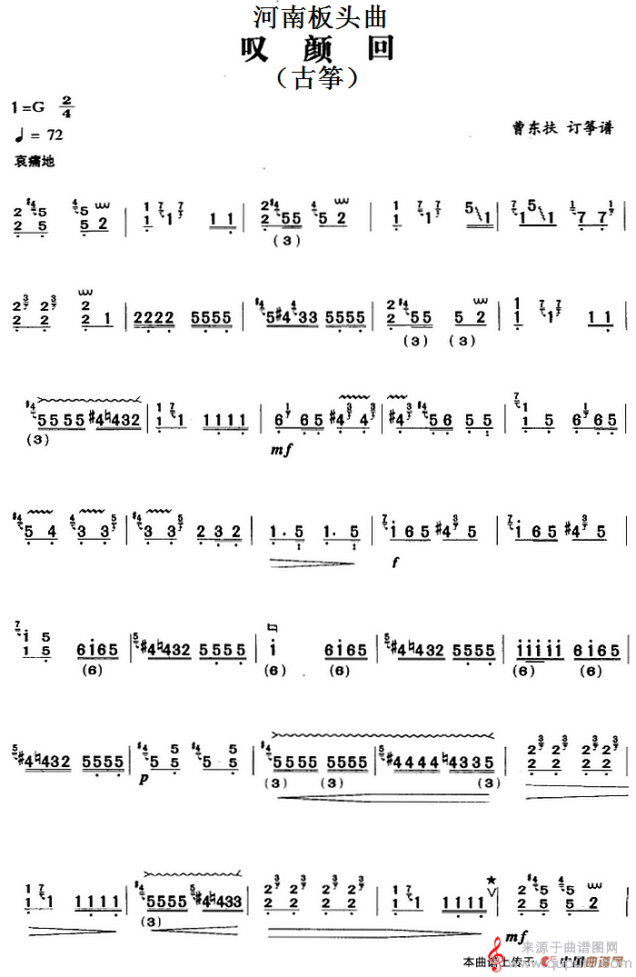 曲谱图网为您提供河南板头曲:叹颜回(古筝曲叹颜回简谱曲谱古筝谱)找谱子,就上曲谱图网。