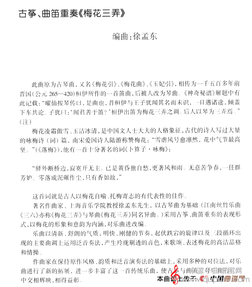 曲谱图网为您提供梅花三弄(古筝曲梅花三弄笛二重奏、五线谱简谱)找谱子,就上曲谱图网。