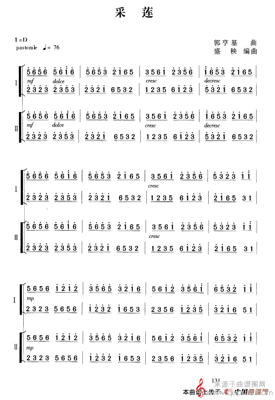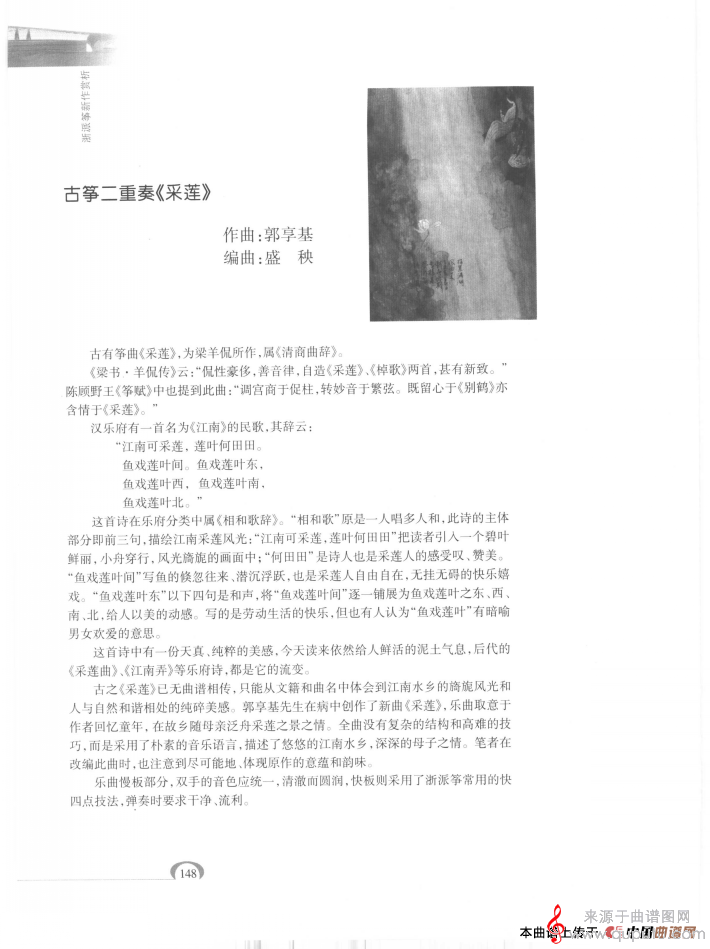 曲谱图网为您提供采莲(古筝二重奏采莲简谱曲谱教学)找谱子,就上曲谱图网。