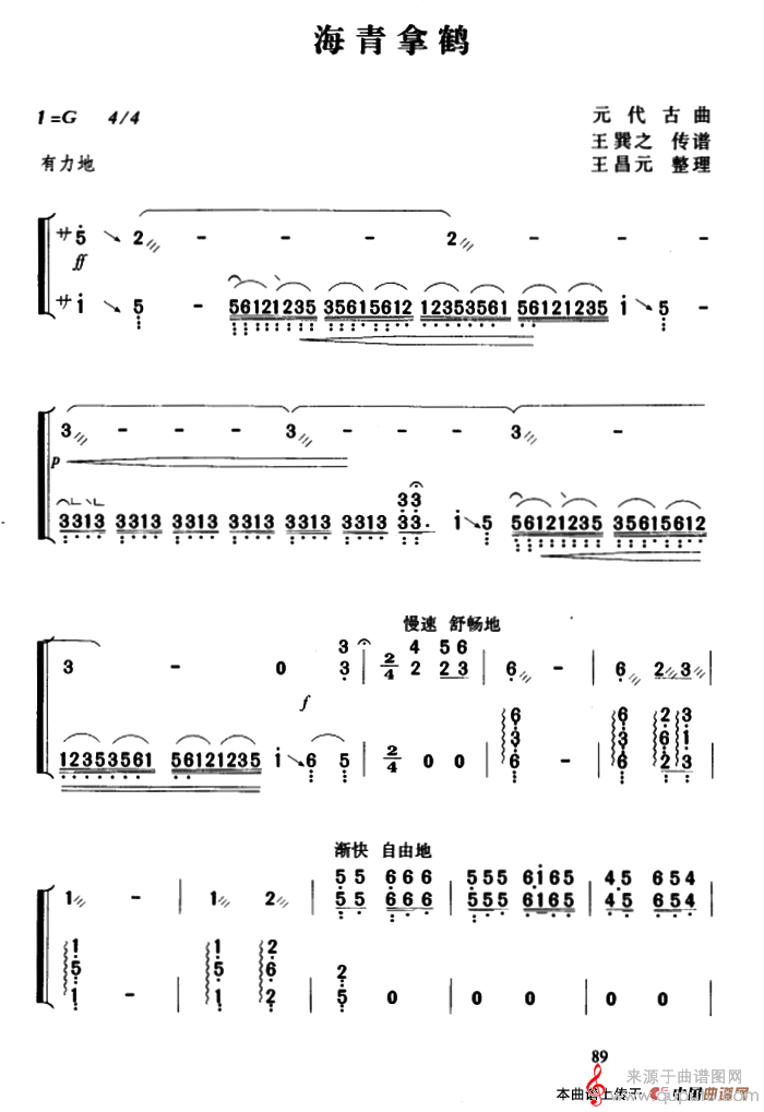 海青拿鹤(元代古曲海青拿鹤歌词歌曲简谱)