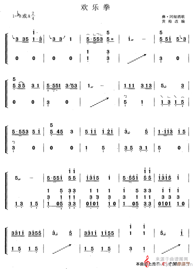 曲谱图网为您提供欢乐拳(黄梅改编版欢乐拳歌词歌曲简谱曲谱)找谱子,就上曲谱图网。