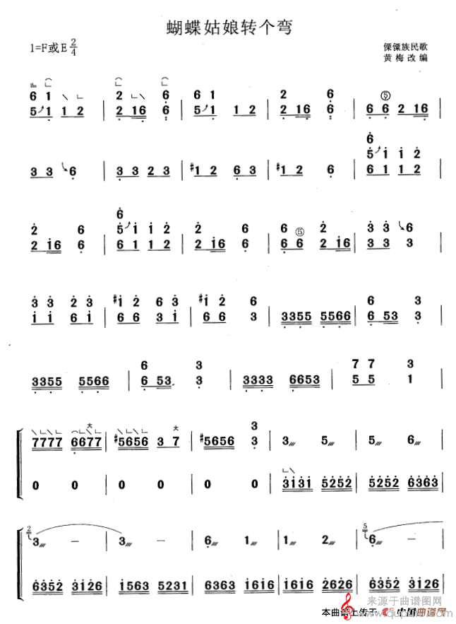曲谱图网为您提供蝴蝶姑娘转个弯(黄梅改编版蝴蝶姑娘转个弯简谱曲谱古筝谱)找谱子,就上曲谱图网。