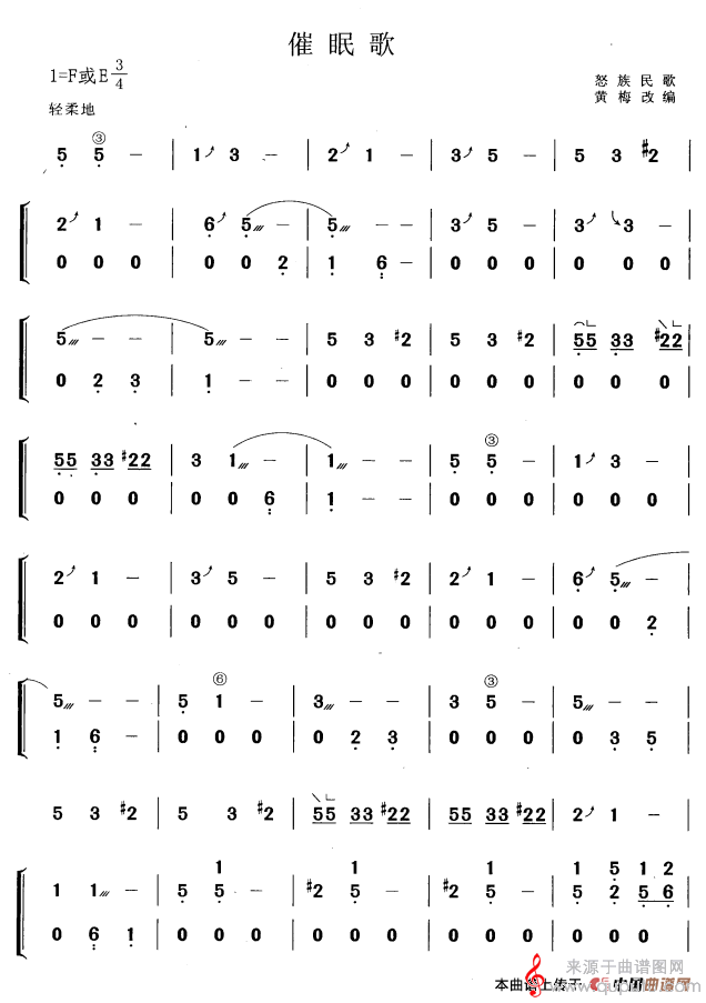 曲谱图网为您提供催眠歌(黄梅改编版怒族民歌催眠歌简谱曲谱古筝谱)找谱子,就上曲谱图网。