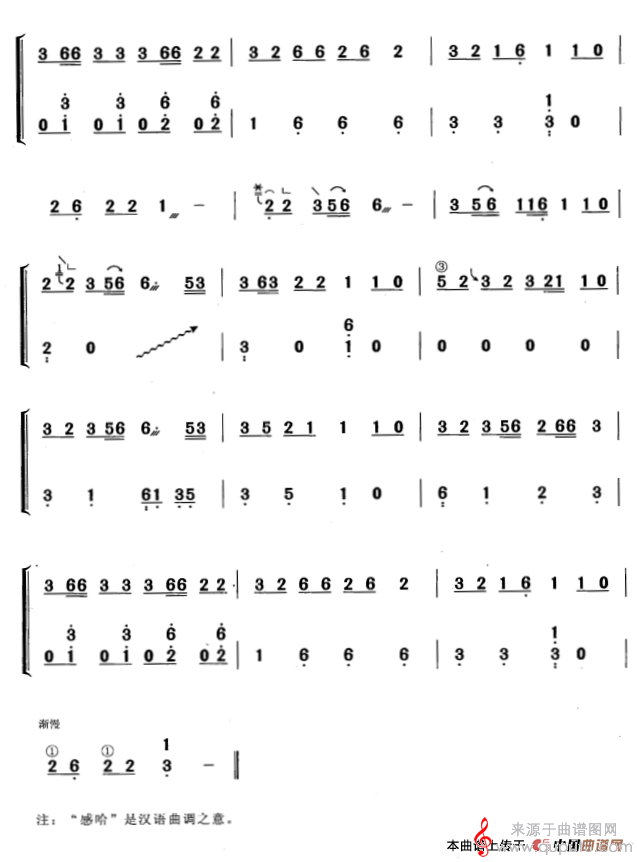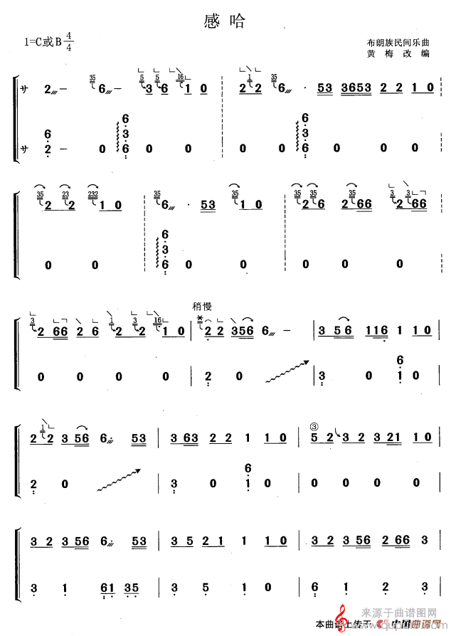 曲谱图网为您提供感哈(黄梅改编版布朗族民间乐曲感哈简谱)找谱子,就上曲谱图网。