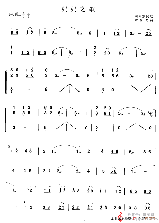 曲谱图网为您提供妈妈之歌(黄梅改编版纳西族民歌妈妈之歌简谱曲谱古筝谱)找谱子,就上曲谱图网。