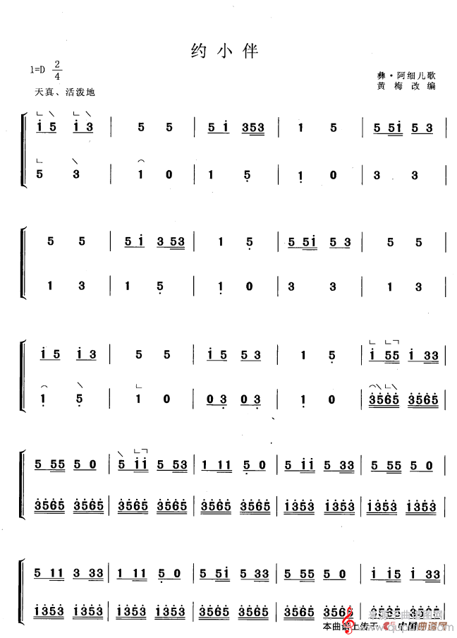 曲谱图网为您提供约小伴(黄梅改编版约小伴简谱曲谱古筝谱)找谱子,就上曲谱图网。
