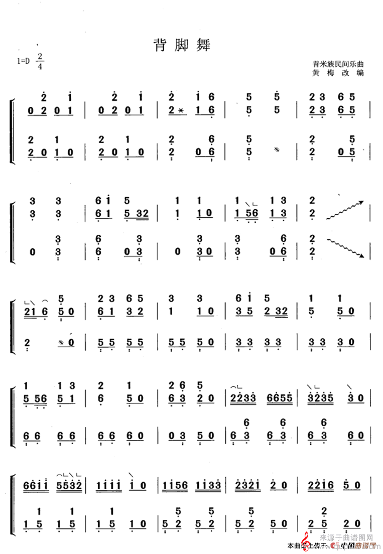 曲谱图网为您提供背脚舞(黄梅改编版普米族民间乐曲背脚舞简谱)找谱子,就上曲谱图网。