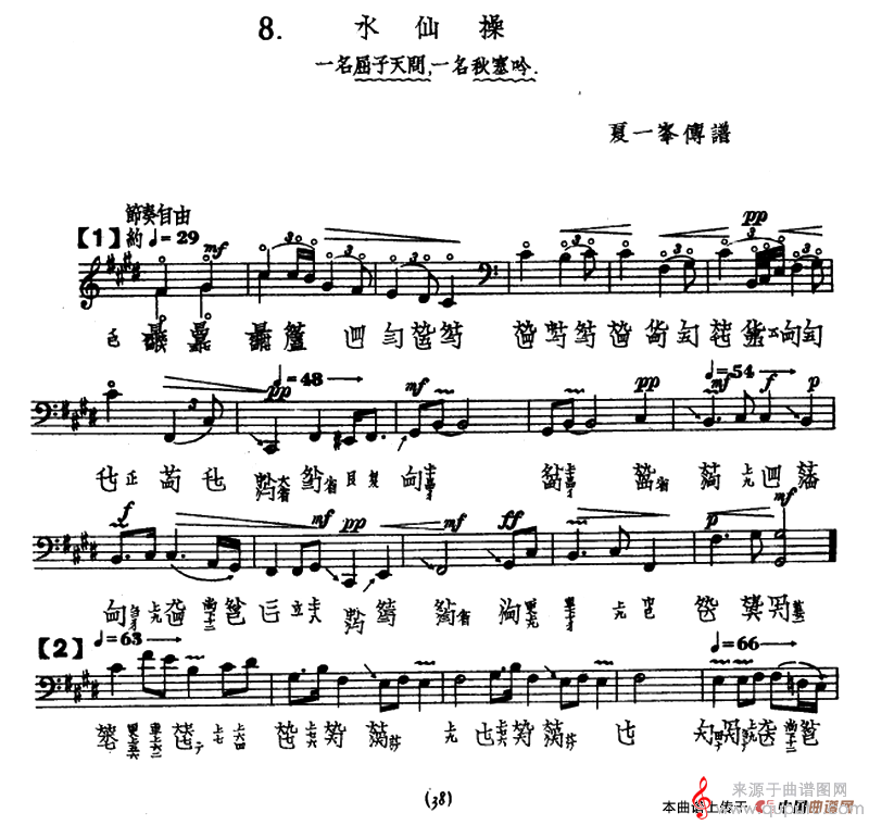 曲谱图网为您提供水仙操(古琴谱、夏一峰传谱版水仙操歌词歌曲简谱曲谱)找谱子,就上曲谱图网。