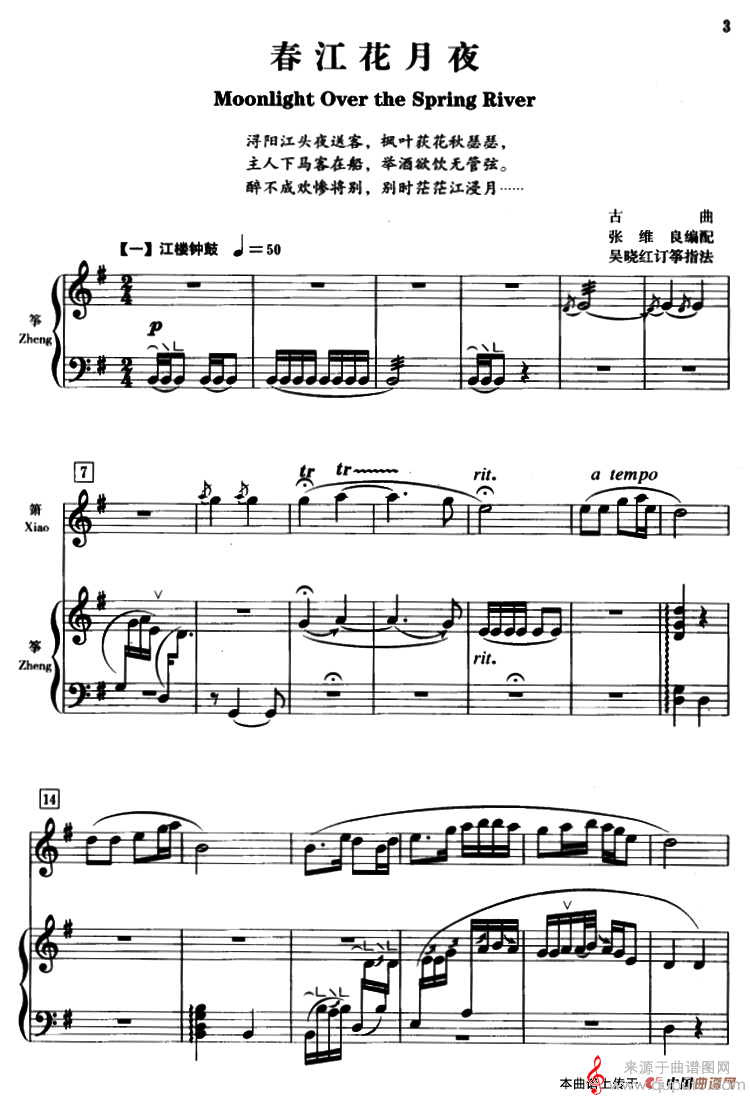春江花月夜(箫+筝、五线谱古曲春江花月夜简谱曲谱古筝谱)