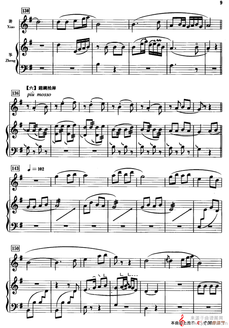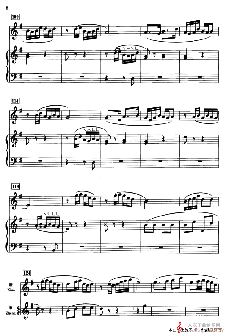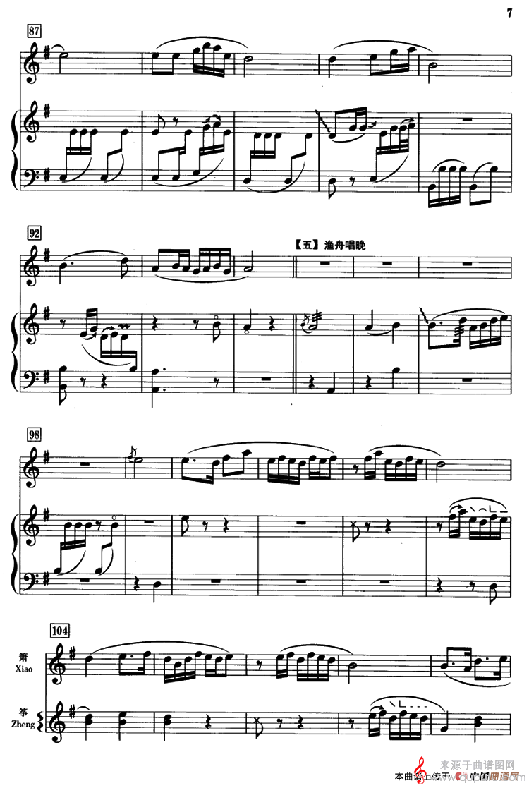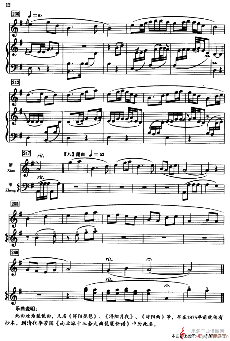 曲谱图网为您提供春江花月夜(箫+筝、五线谱古曲春江花月夜简谱曲谱古筝谱)找谱子,就上曲谱图网。