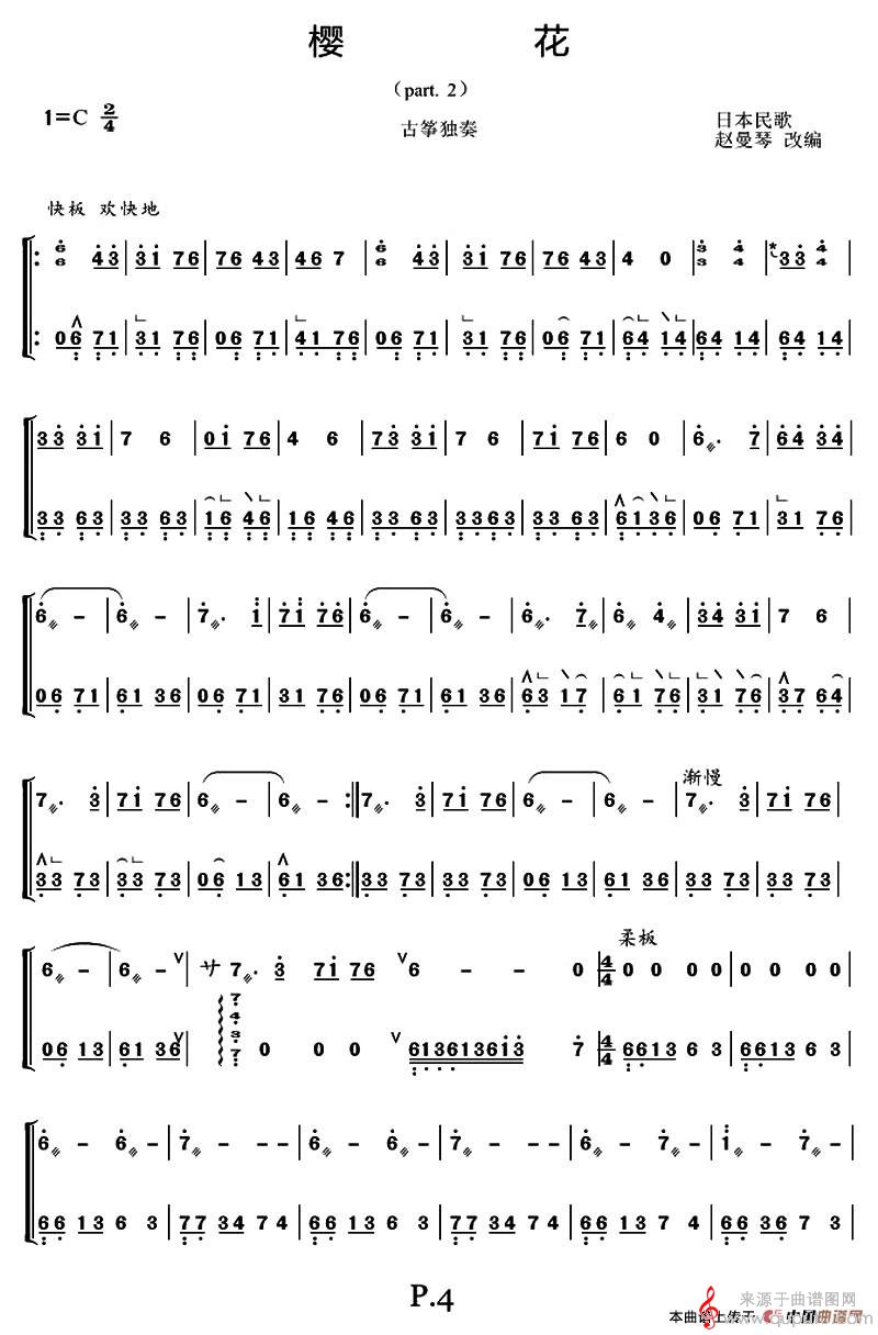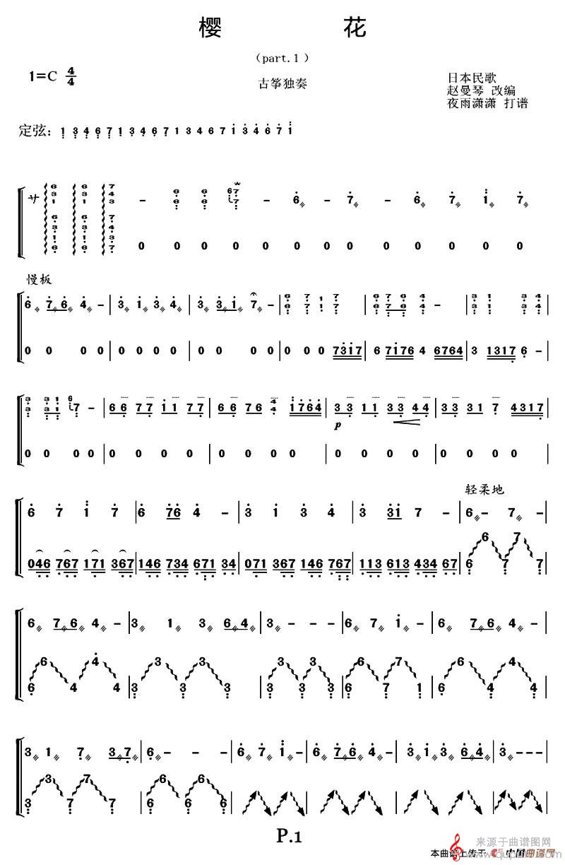 曲谱图网为您提供樱花(夜雨潇潇制谱版日本民歌古筝独奏曲樱花简谱)找谱子,就上曲谱图网。