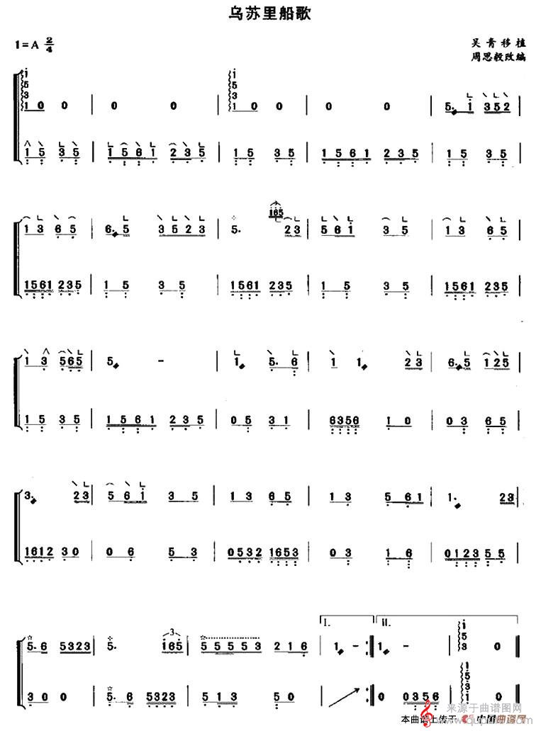 曲谱图网为您提供乌苏里船歌(吴青移植版乌苏里船歌歌词歌曲简谱)找谱子,就上曲谱图网。