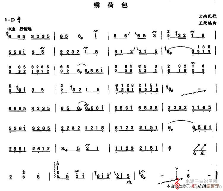 曲谱图网为您提供绣荷包(云南民歌、王荣编曲版绣荷包原创简谱曲谱古筝谱)找谱子,就上曲谱图网。