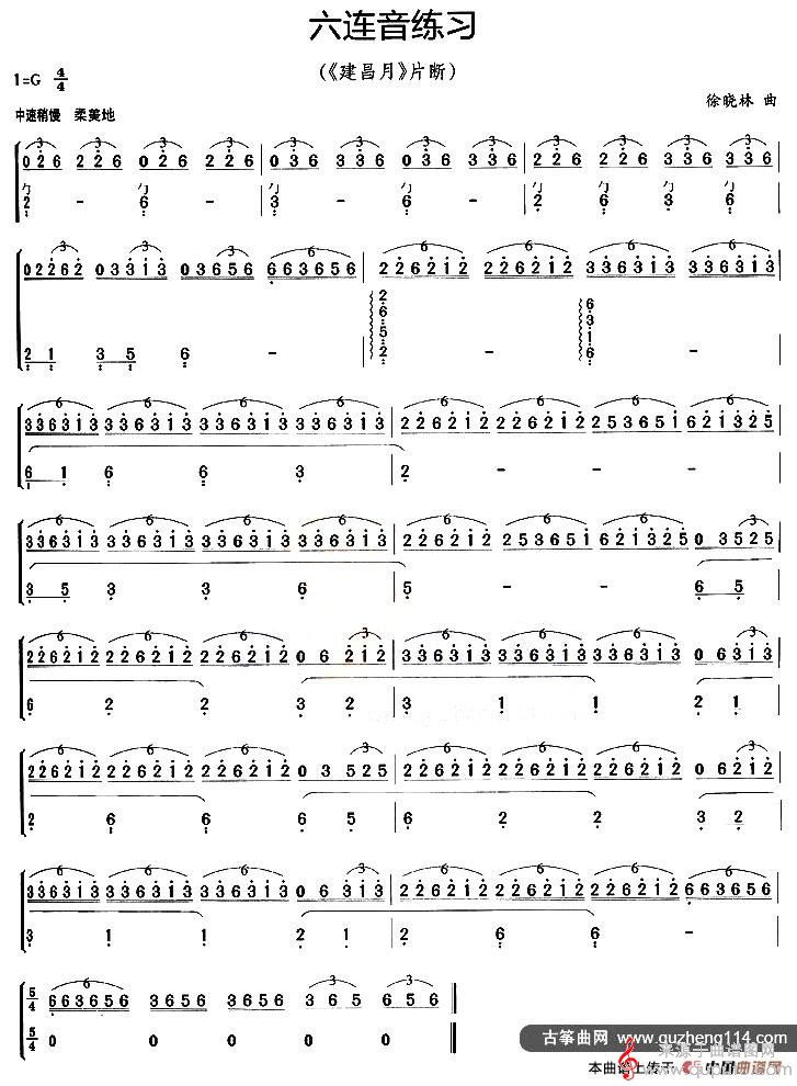 曲谱图网为您提供古筝六连音练习(《建昌月》片段古筝六连音练习古筝谱简谱曲谱)找谱子,就上曲谱图网。