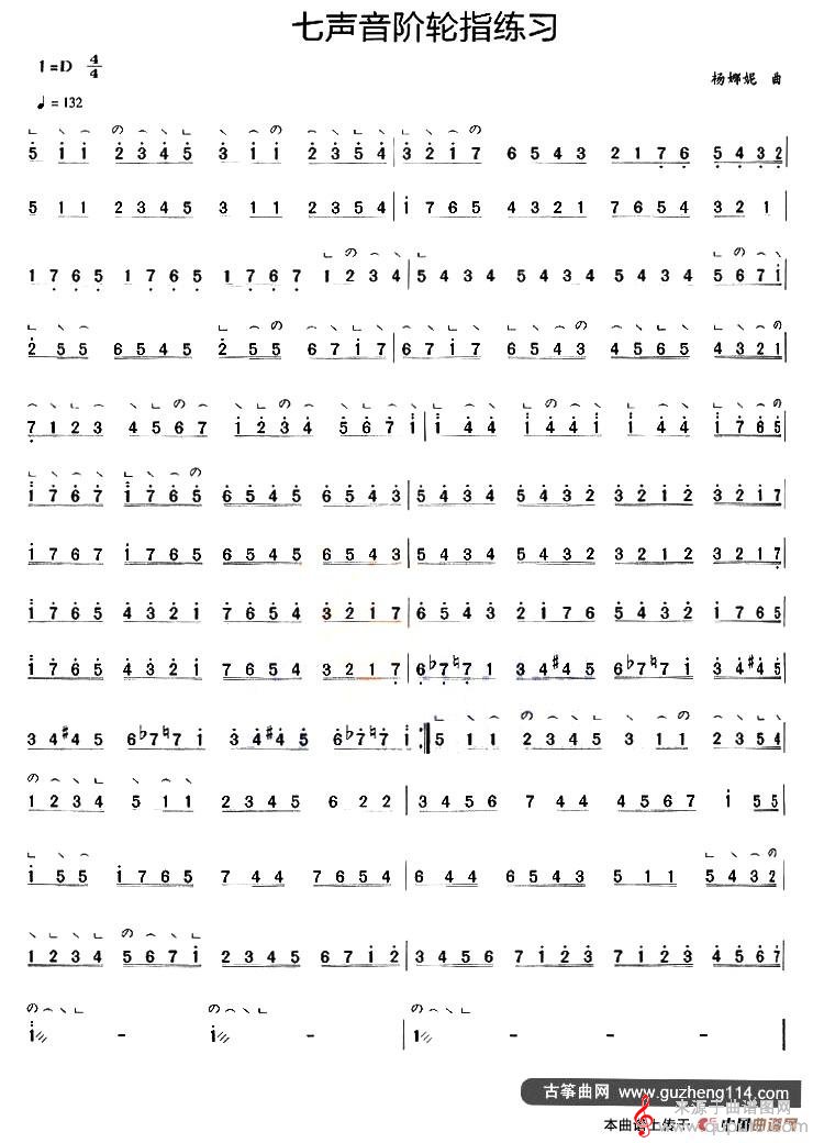 古筝七声音阶轮指练习(古筝七声音阶轮指练习简谱曲谱古筝谱)