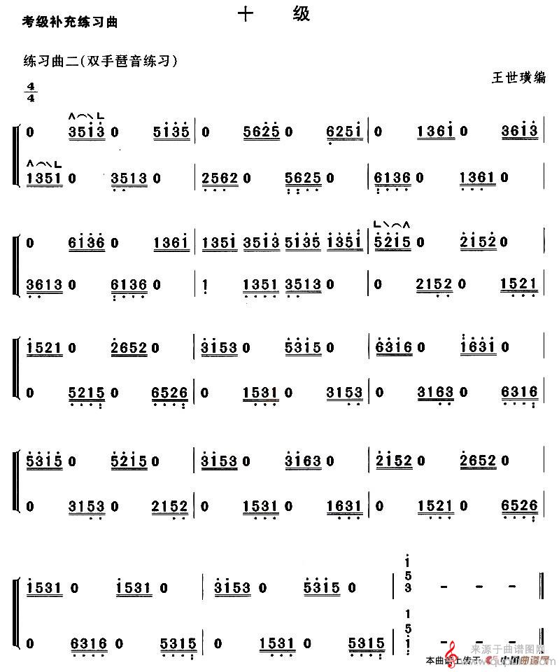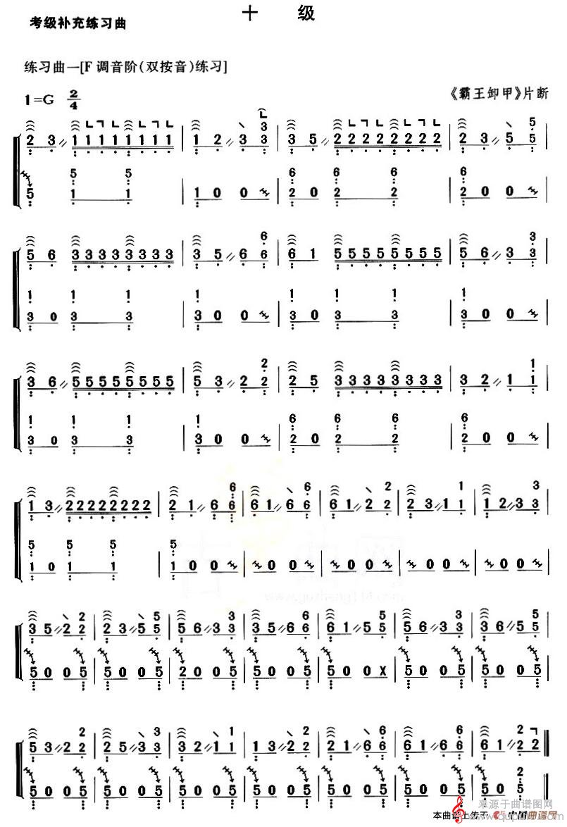 曲谱图网为您提供考级补充练习曲(十级《霸王卸甲》片段简谱)找谱子,就上曲谱图网。