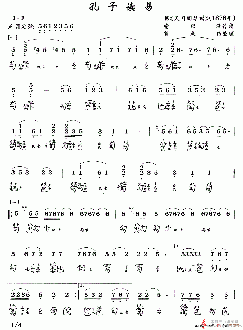 曲谱图网为您提供孔子读易(古琴谱、简谱+减字谱孔子读易曲谱古筝谱教学)找谱子,就上曲谱图网。