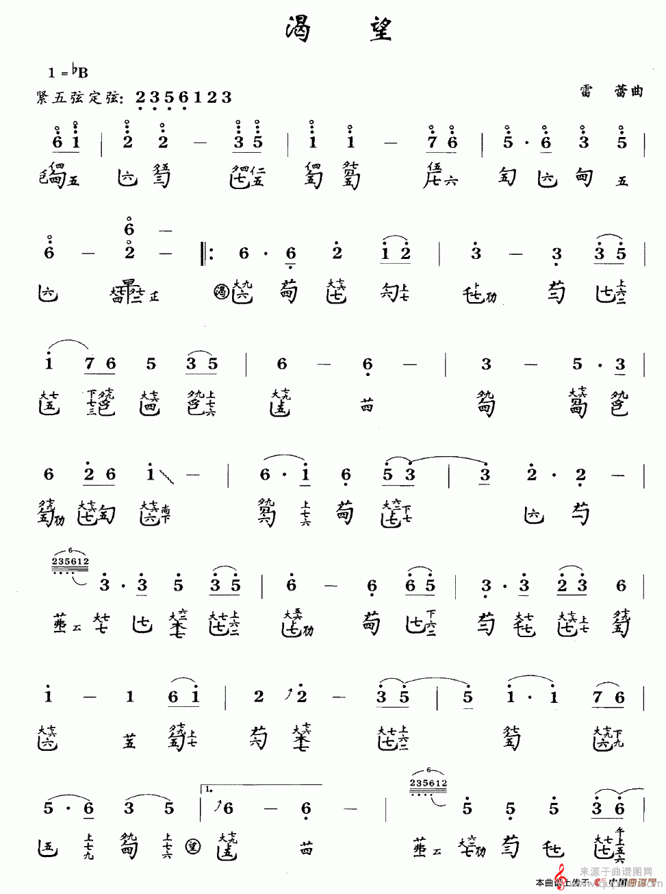 曲谱图网为您提供渴望(古琴谱、简谱+减字谱渴望简谱曲谱古筝谱)找谱子,就上曲谱图网。