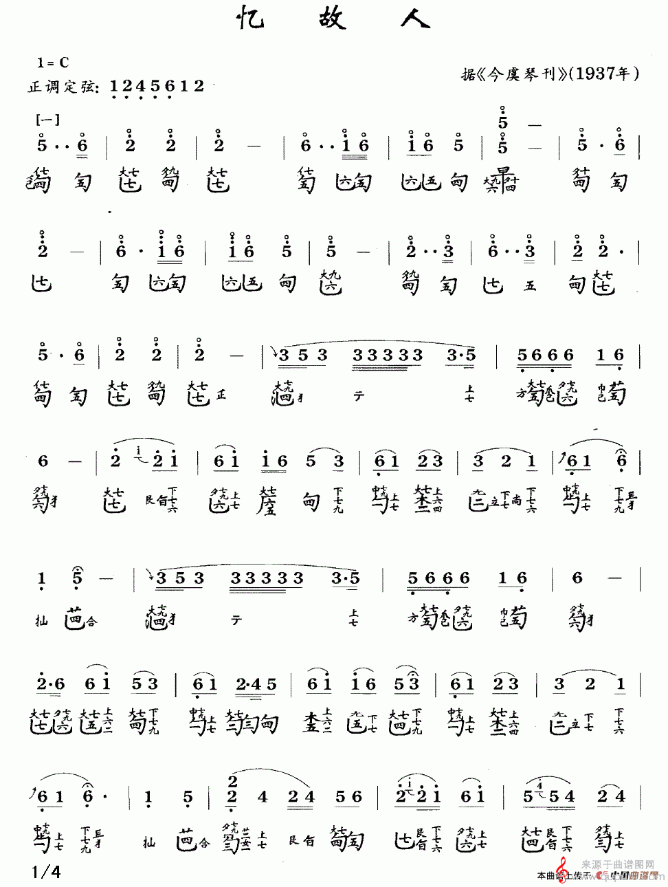 曲谱图网为您提供忆故人(古琴谱、简谱+减字谱忆故人简谱曲谱古筝谱)找谱子,就上曲谱图网。