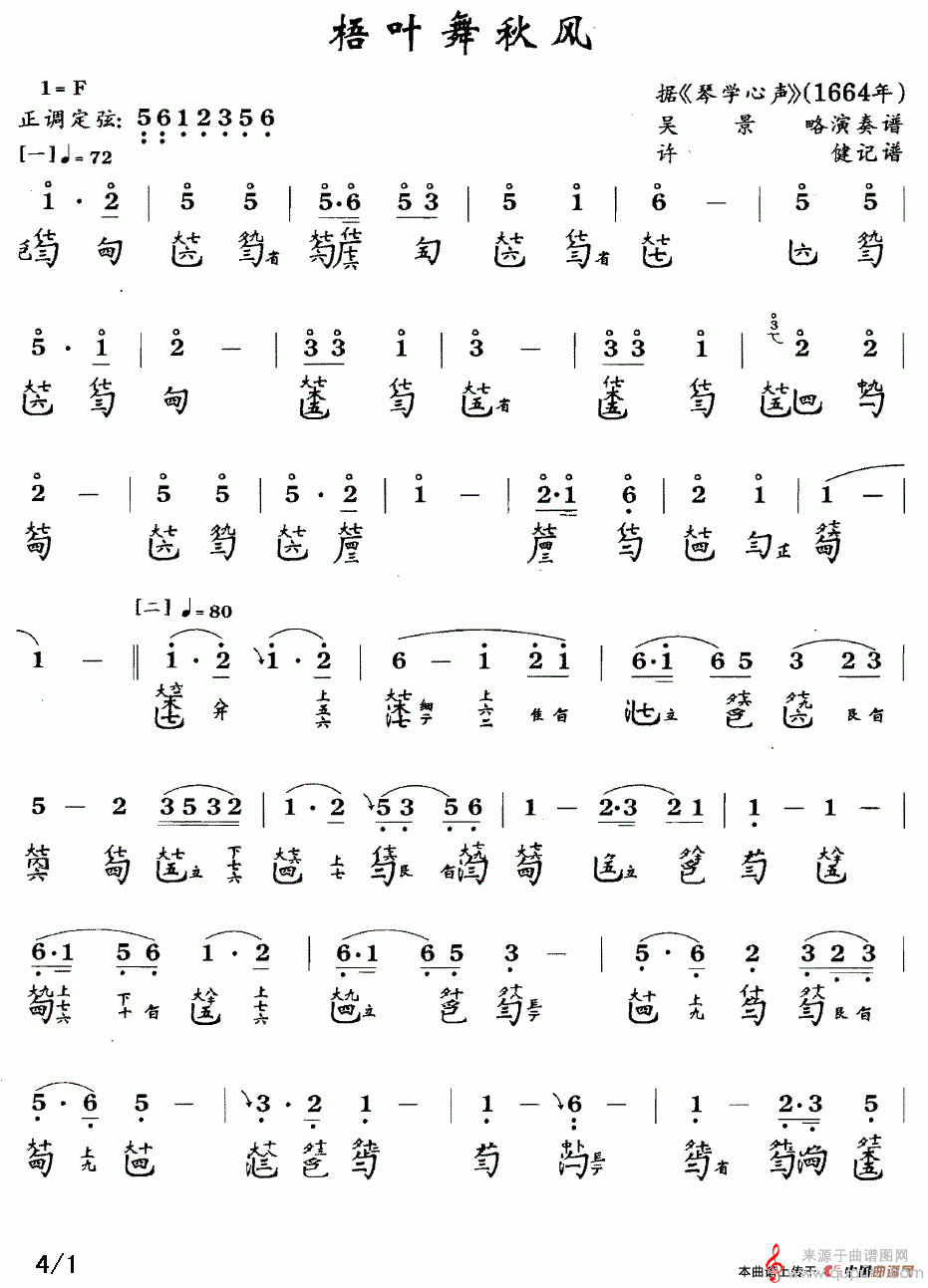 曲谱图网为您提供梧叶舞秋风(古琴谱、简谱+减字谱梧叶舞秋风简谱曲谱)找谱子,就上曲谱图网。