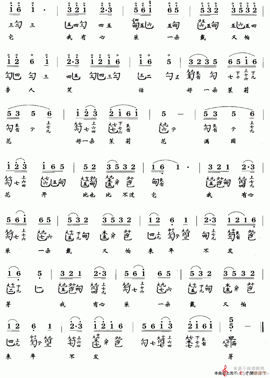 曲谱图网为您提供茉莉花(江苏民歌茉莉花简谱曲谱)(古琴谱、简谱+减字谱)找谱子,就上曲谱图网。