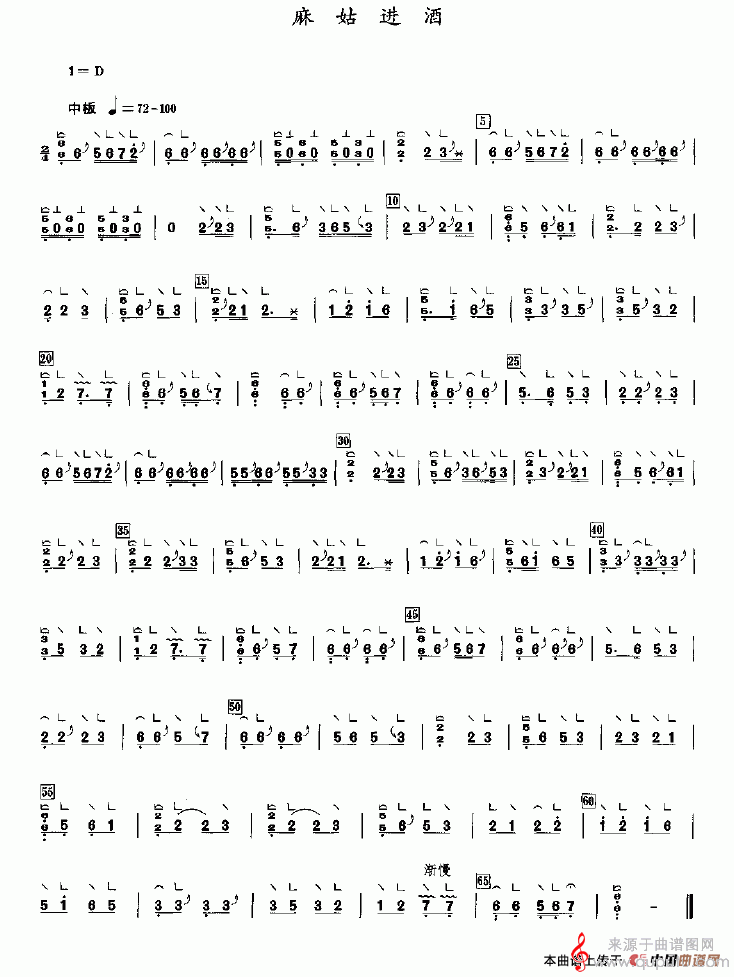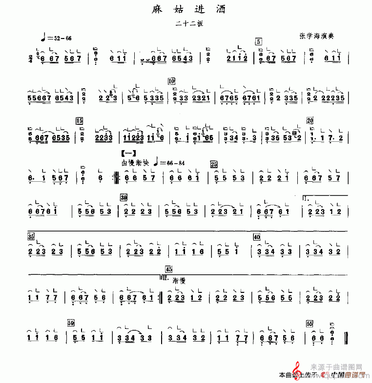 曲谱图网为您提供麻姑进酒(张学海演奏版麻姑进酒歌词歌曲简谱)找谱子,就上曲谱图网。