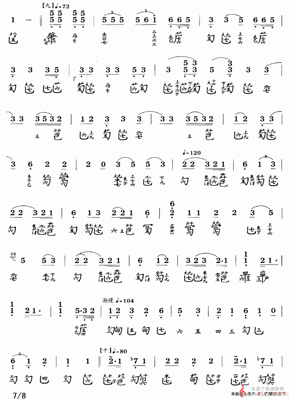 曲谱图网为您提供梅花三弄(古琴谱 F调 简谱+减字谱 张子谦演奏谱梅花三弄古琴谱曲谱)找谱子,就上曲谱图网。