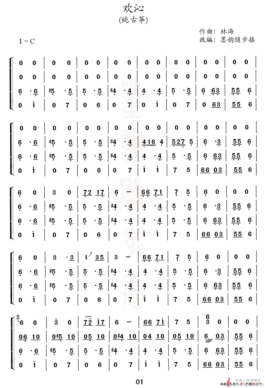 曲谱图网为您提供欢沁 (古筝四重奏欢沁简谱曲谱教学)找谱子,就上曲谱图网。