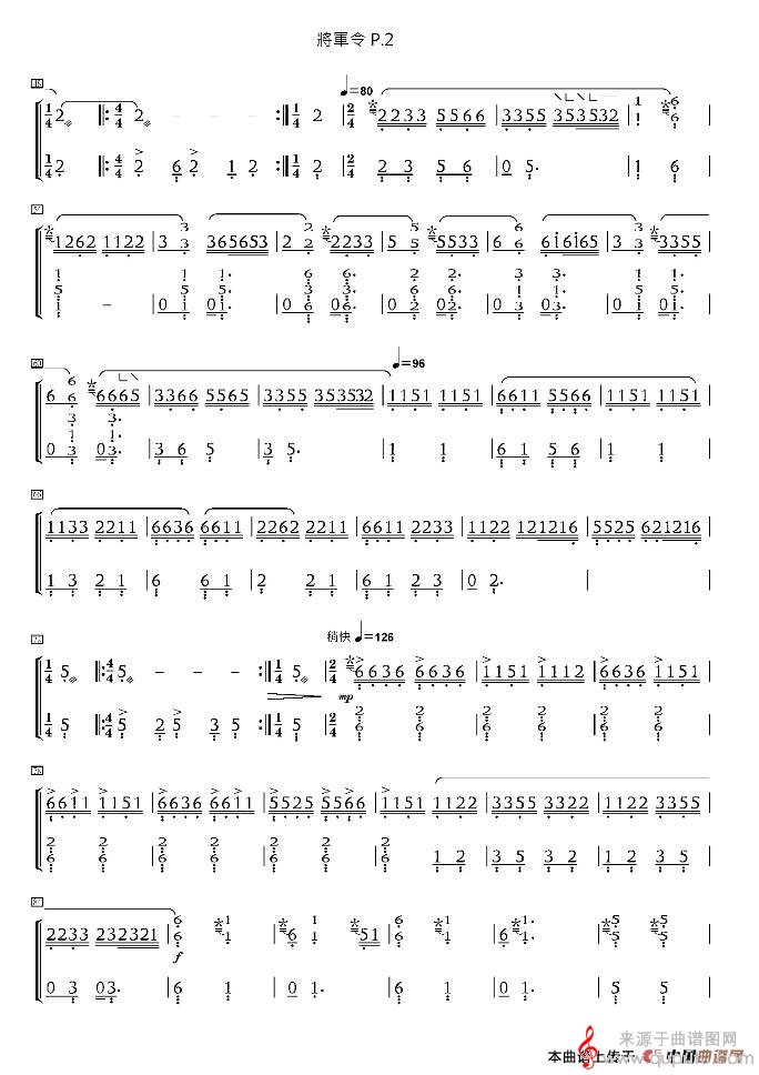 将军令(浙江筝曲 王巽之传谱版将军令简谱曲谱)