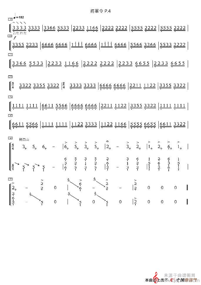 曲谱图网为您提供将军令(浙江筝曲 王巽之传谱版将军令简谱曲谱)找谱子,就上曲谱图网。