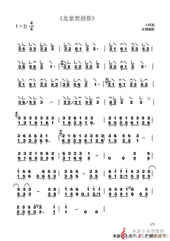 曲谱图网为您提供北京欢迎你(史健编配版北京欢迎你简谱曲谱古筝谱)找谱子,就上曲谱图网。
