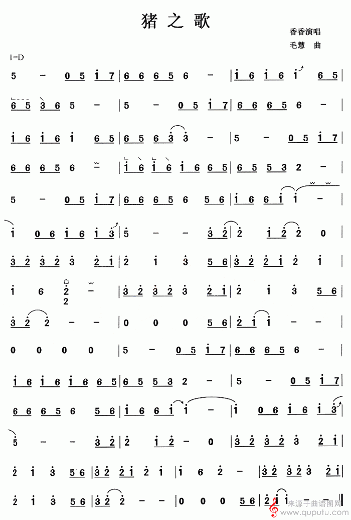 曲谱图网为您提供猪之歌(古筝曲乐谱)找谱子,就上曲谱图网。