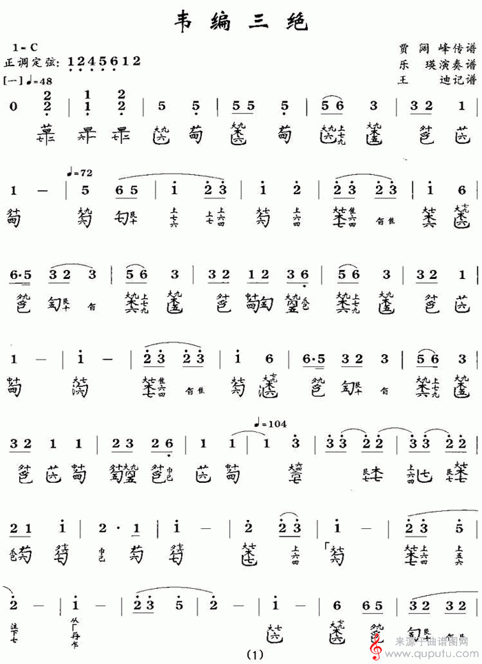 曲谱图网为您提供韦编三绝(古筝曲教学简谱)找谱子,就上曲谱图网。