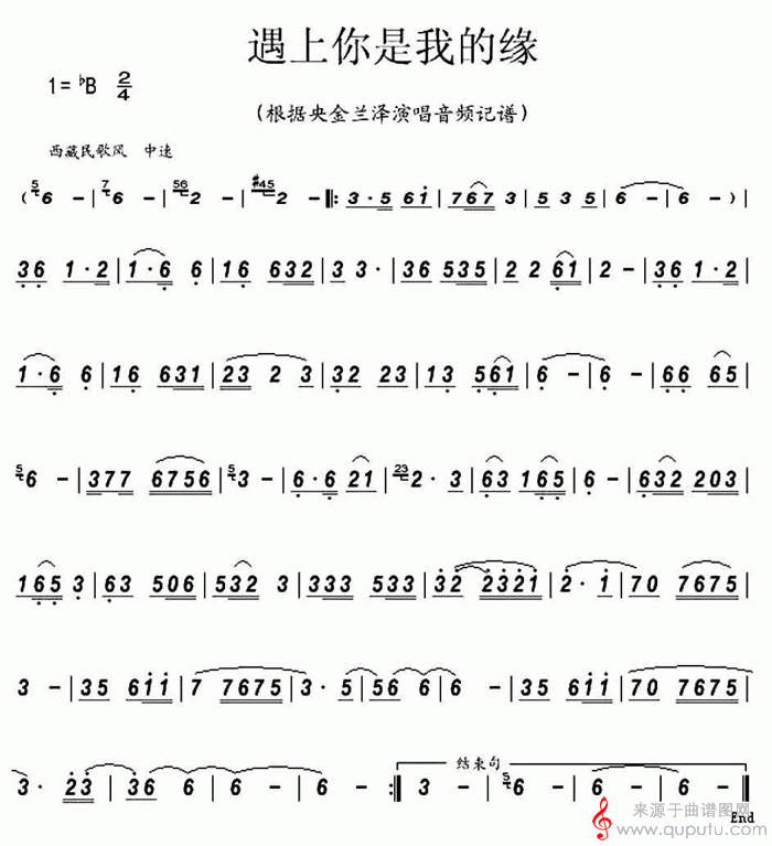 曲谱图网为您提供遇上你是我的缘(葫芦丝吹奏简谱)找谱子,就上曲谱图网。
