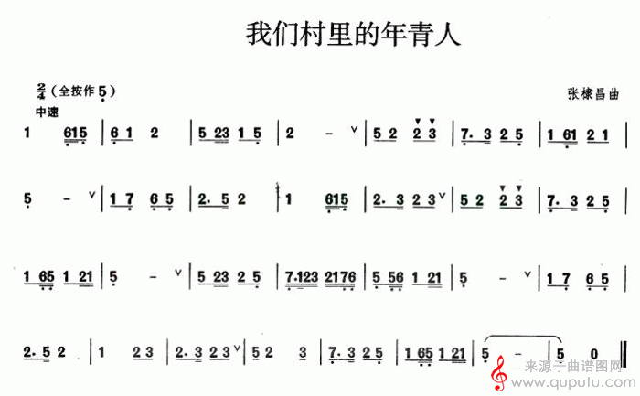 曲谱图网为您提供我们村里的年青人(葫芦丝曲谱)找谱子,就上曲谱图网。