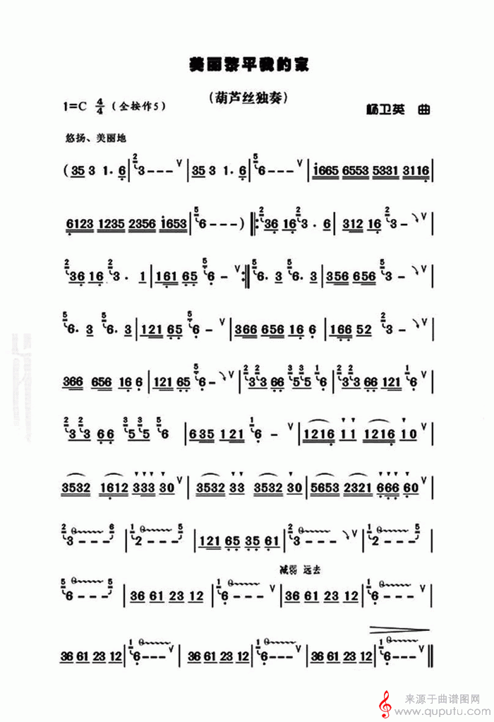 曲谱图网为您提供美丽黎平我的家(葫芦丝C调独奏曲)找谱子,就上曲谱图网。