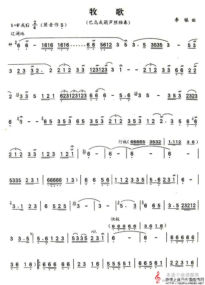 当前位置:曲谱图网器乐曲谱葫芦丝牧歌简谱(牧歌原唱歌曲)