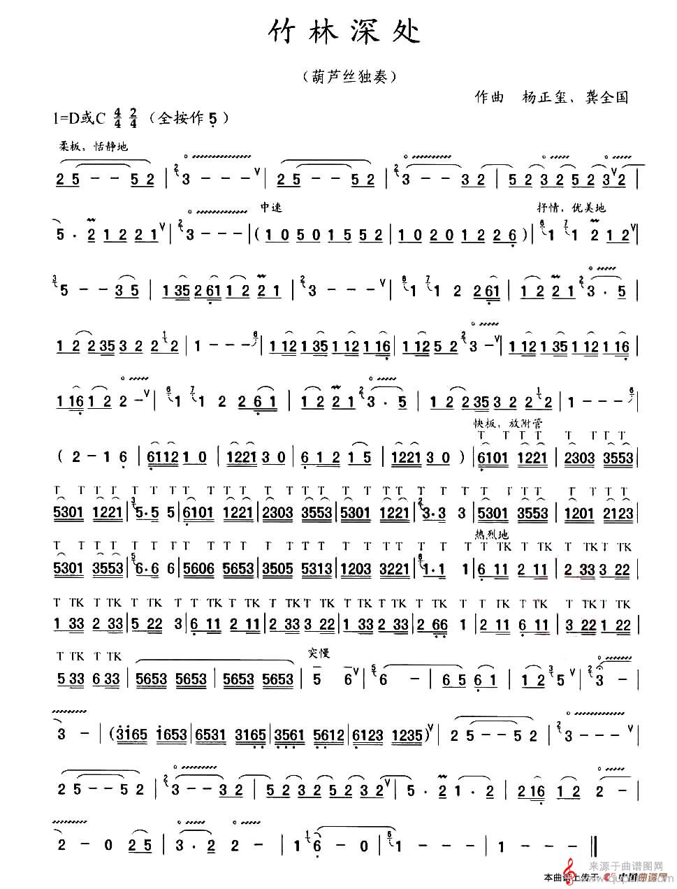 曲谱图网为您提供竹林深处简谱(竹林深处葫芦丝简谱)找谱子,就上曲谱图网。