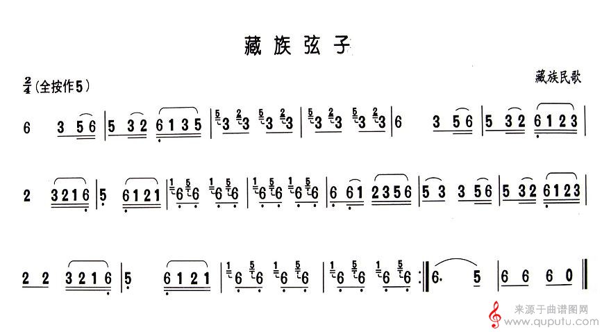 曲谱图网为您提供藏族弦子简谱(藏族弦子葫芦丝)找谱子,就上曲谱图网。