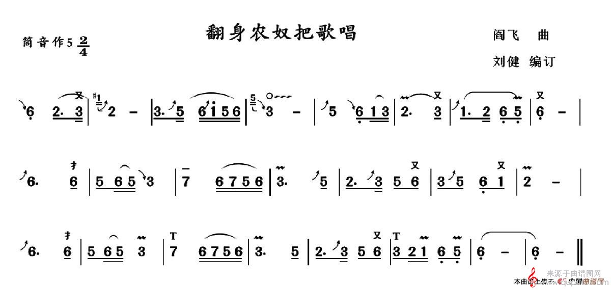 曲谱图网为您提供翻身农奴把歌唱简谱(翻身农奴把歌唱葫芦丝)找谱子,就上曲谱图网。
